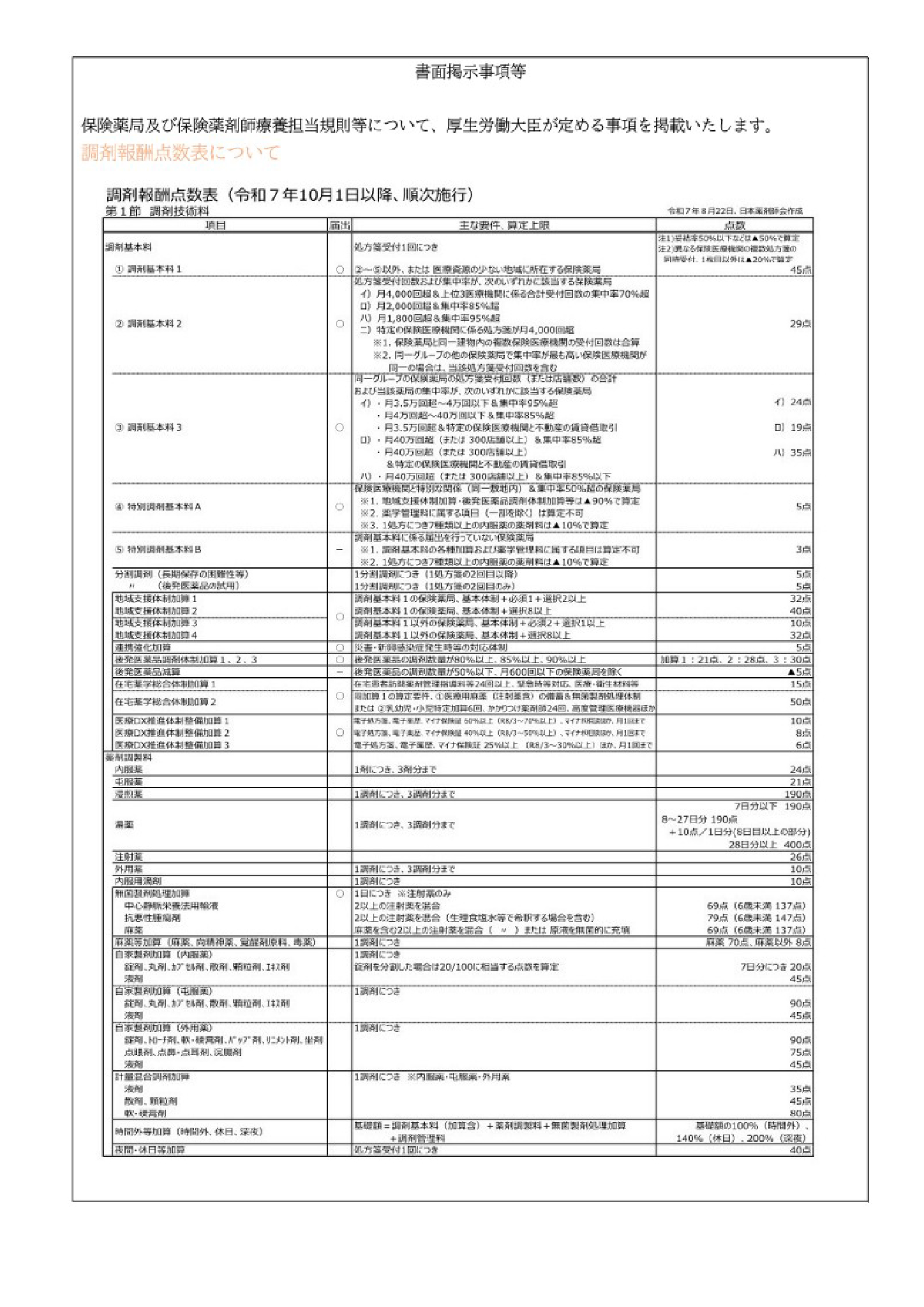 書面掲示事項